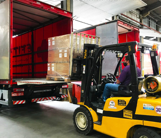 Para que haja segurança e velocidade no manuseio da carga, utilizamos empilhadeiras e transpaletes em nosso processo logístico.